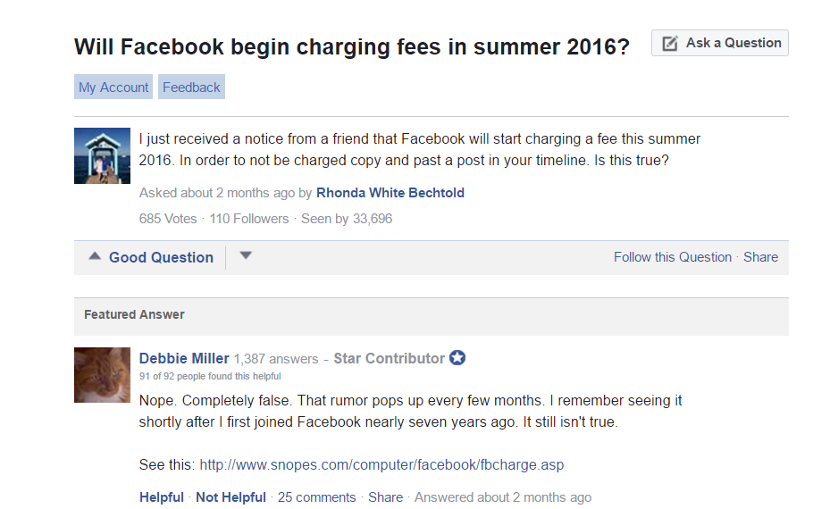 اگر ہم اس پوسٹ کو گوگل کریں تو بغیر کسی تردد کے پتا چل سکتا ہے کہ سب جھوٹ ہے، ایسا کچھ نہیں ہے۔ فیس بک ایک فری پلیٹ فورم ہے۔ اور اس کی پرائیویسی کی ایک خاص پالیسی ہے۔ پہلی نظر میں ہی ایسے درجنوں لنک مل جاتے ہیں کہ یقین ہو جاتا ہے کہ یہ سب جھوٹ ہے، لیکن پھر بھی بہت سے لوگ اس جھوٹ کا حصہ بننا زیادہ پسند کرتے ہیں۔ ایسا کیوں ہے۔ سنی سنائی ہر بات پر ہم کیونکر یقین کر سکتے ہیں۔ اس کی وجہ شاید یہ ہے کہ